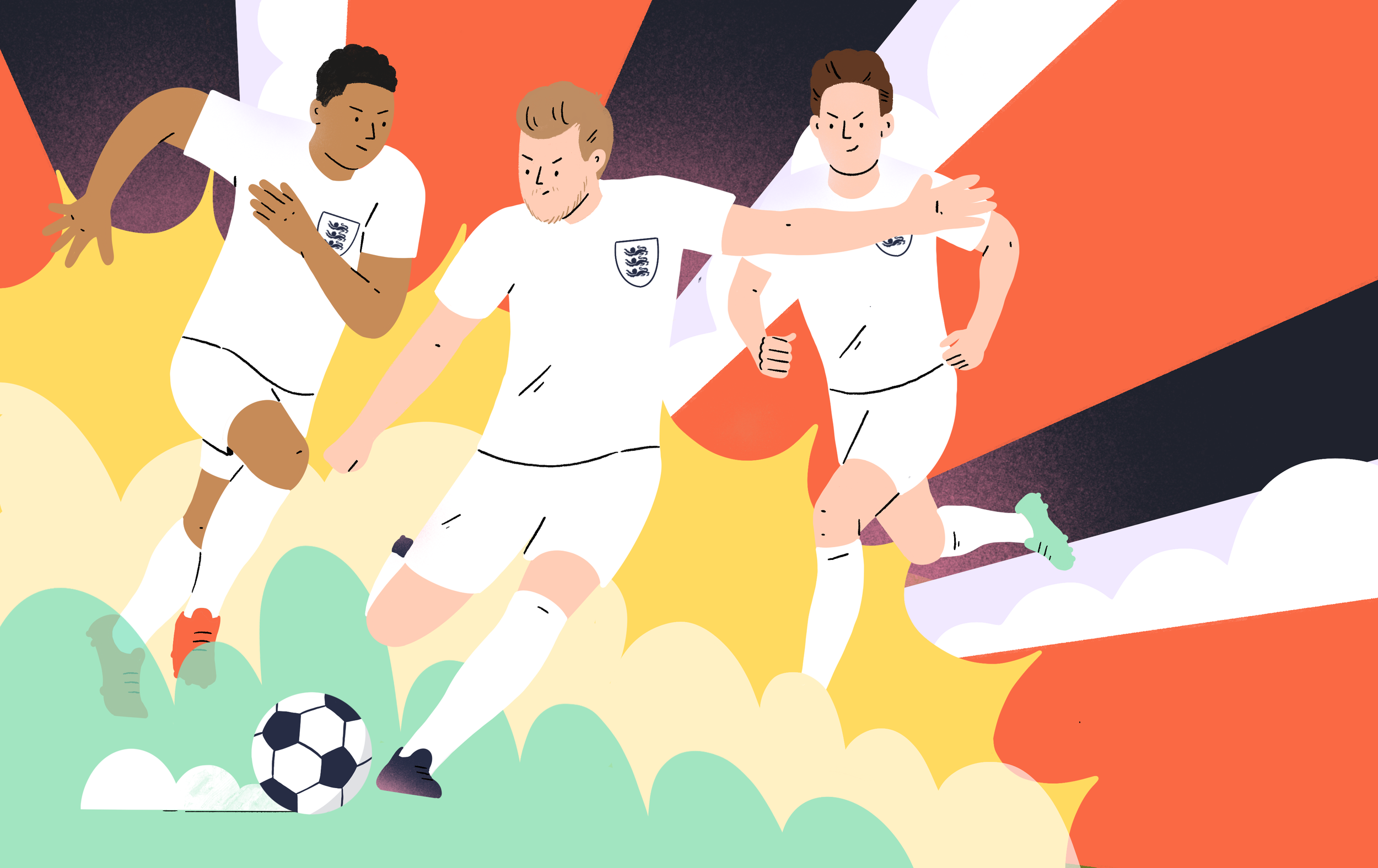 This is a spread from the upcoming Dream Teams title ‘England’, which follows a parent and child’s journey to, and through, an England Men’s football game.
