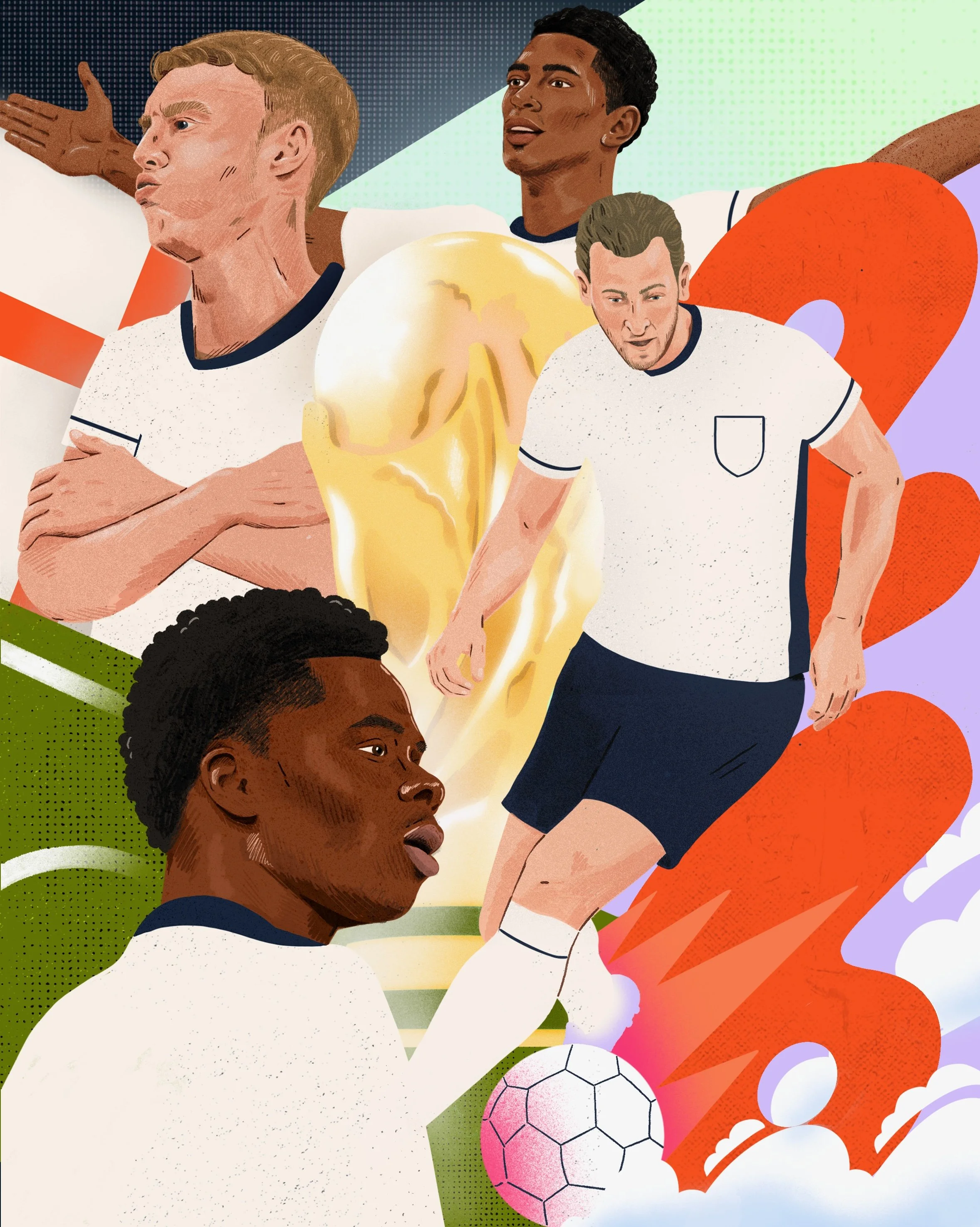 I created this artwork in anticipation of the 2026 World Cup, highlighting a handful of England Men’s team. This is intended for use on either a programme cover, marketing materials, posters or a painted mural. I wanted to create something bold and exciting, with a nod to ‘26’ and to build excitement.